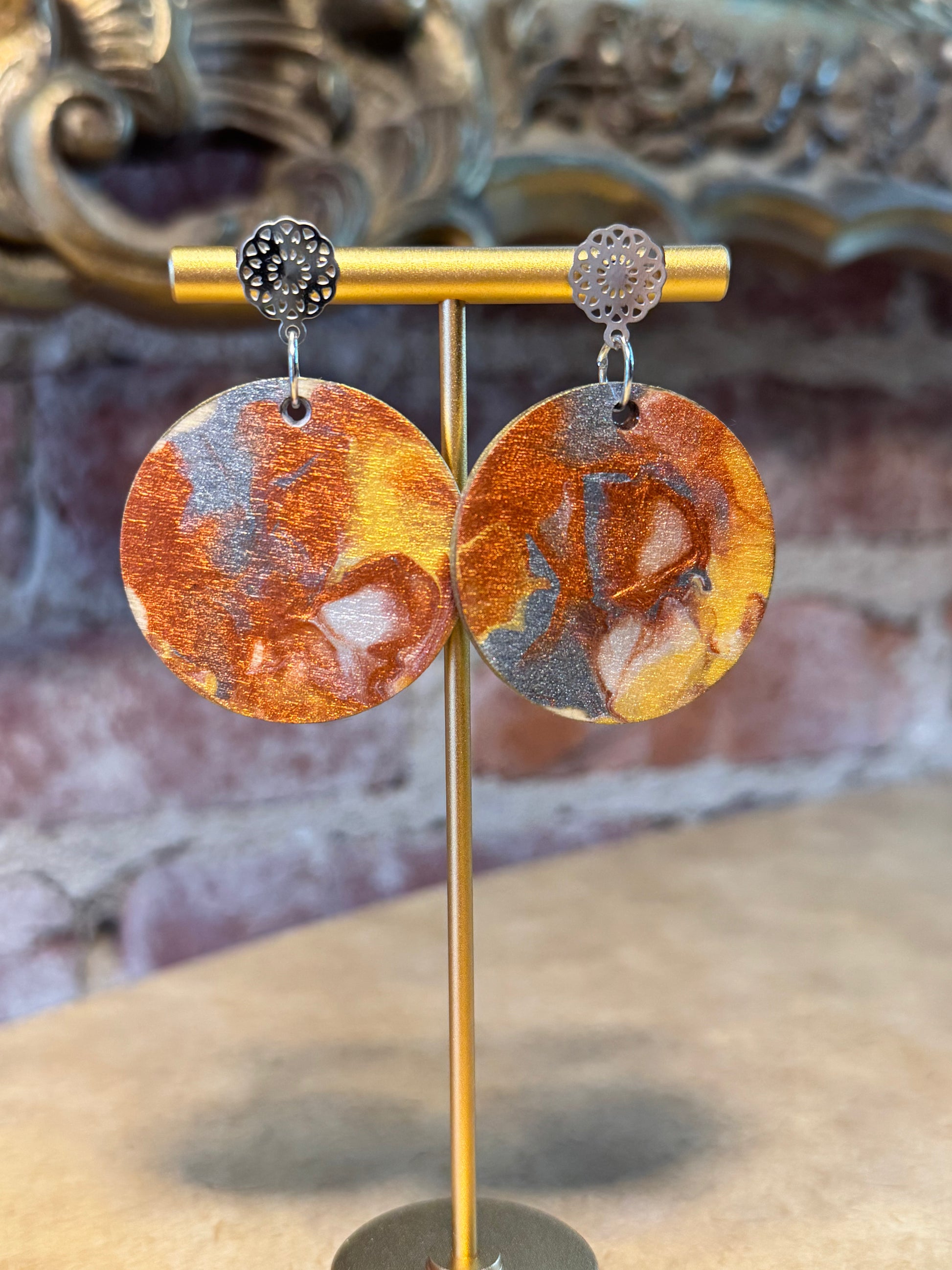 Rust, Silver and Gold Round on Silver Filigree Stud